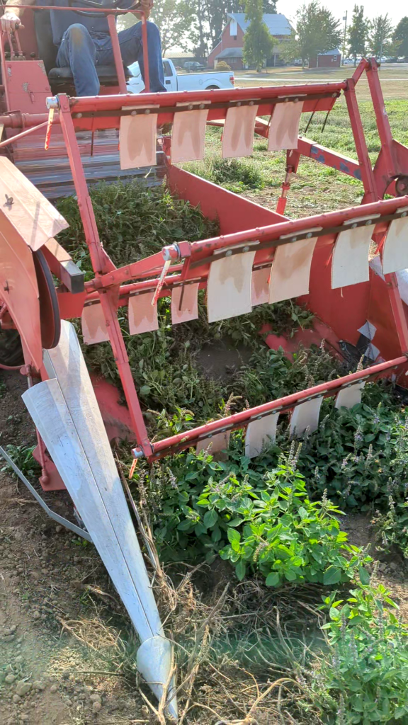 A small plot combine harvests Tulsi for the second cutting of the season.